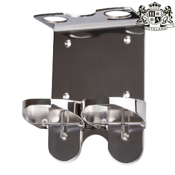 Stainless steel dispenser rack for 2 bottleS. Suggested to be screwed on the wall. Combine it with 300ml bottles from LE MIEL or MYTHIC OLEA lines.