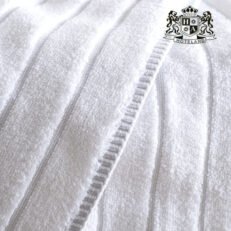 Πετσέτα με σύνθεση από 100% βαμβάκι με φίνα νήματα πενιέ, βάρους 550 gr/m2. Έχει δίκλωνη βάση για μεγαλύτερη αντοχή στη χρήση, μονόκλωνο πέλος και ενισχυμένες ούγιες με διπλό γαζί. Στο φινίρισμά της έχει λεπτό diagonal σχέδιο. Μια μίνιμαλ, πλούσια και αφράτη πετσέτα με φυσική σύνθεση. Είναι φιλική προς το δέρμα και προσφέρει αίσθηση απαλότητας και άνεσης κατά το στέγνωμα. Το ύφασμά της αναπνέει, είναι απορροφητικό, υποαλλεργικό, στεγνώνει γρήγορα και έχει μεγάλη αντοχή στον χρόνο και στα συχνά πλυσίματα. Μπορεί να πλυθεί σε θερμοκρασία έως 90⁰C.